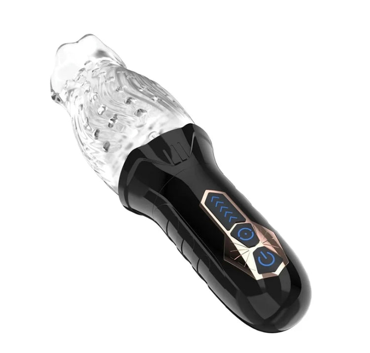 with a stretchy textured cup, a pair of luscious lips at the opening, and a
